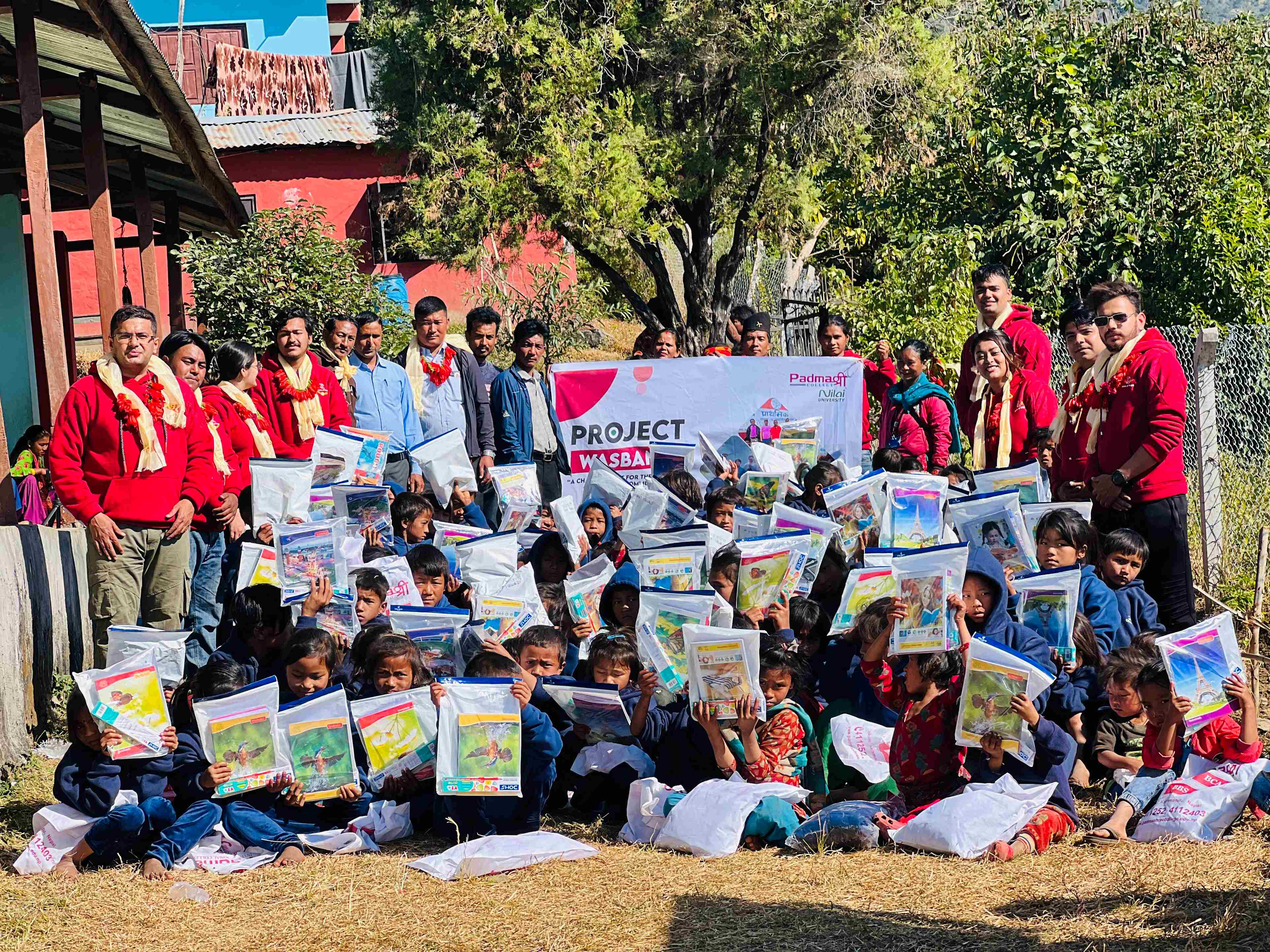 In order to address the deprived community, particularly the students of Shree Harara Bisauna Primary School (श्री हररा बिसाउन आधारभुत विद्यालय) and Shree Rashtriya Primary School (श्री राष्ट्रिय आधारभुत विद्यालय), the Project Wasbang was conceived. The students travelled to the venue with donations to be delivered on Mangsir 12, 2079, leaving Padmashree College early in the morning. The event's coordinator and vice principal of the college, Mr. Hemant Gautam, accompanied the volunteers. Ashok Kumar Praja, Ward Head of Rapti Municipality Ward No. 13, Principal of the School, Pramod Kumar Shah, Female Union Representative Heema Kumari Sunar, and Teacher's Representative Som Bahadur Praja were the key attendees at the event.