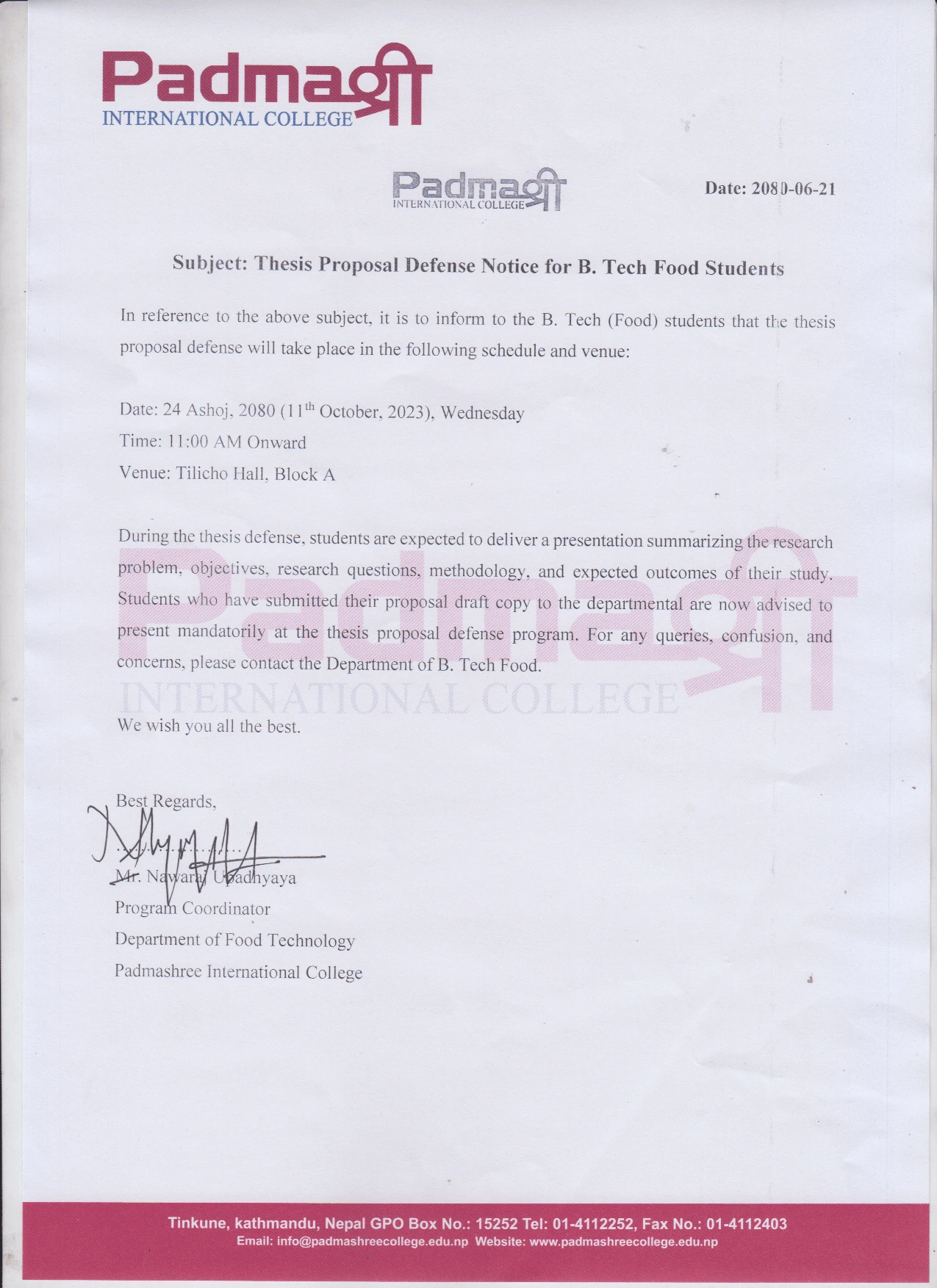 B. Tech food students of Padmashree College conduc