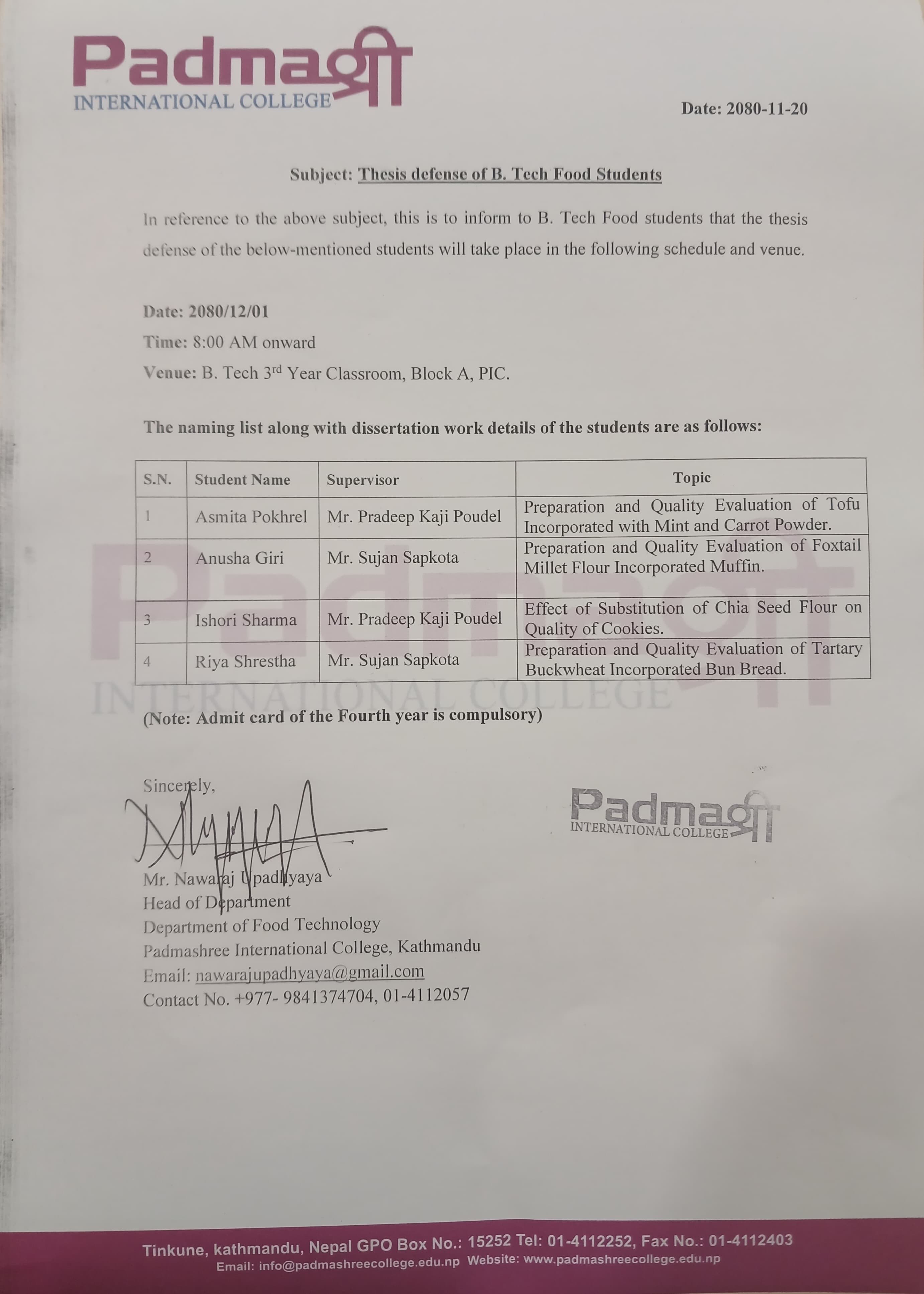 B. Tech food students of Padmashree College conduc